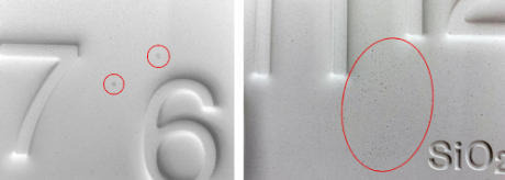 由於矽藻土製品是由泥瓦匠手工製作,混合材料硬化後顏色深淺的差異可能會形成紋理。此外,產品表面也可能出現細小的凹痕或針孔;請理解,這些都是該材料的特性。
